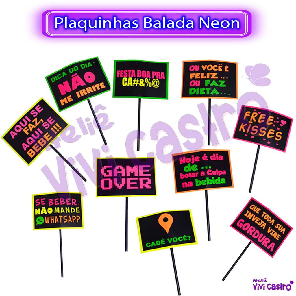 Conteúdo: 10 Plaquinhas Diversas de Festa Neon – Balada M